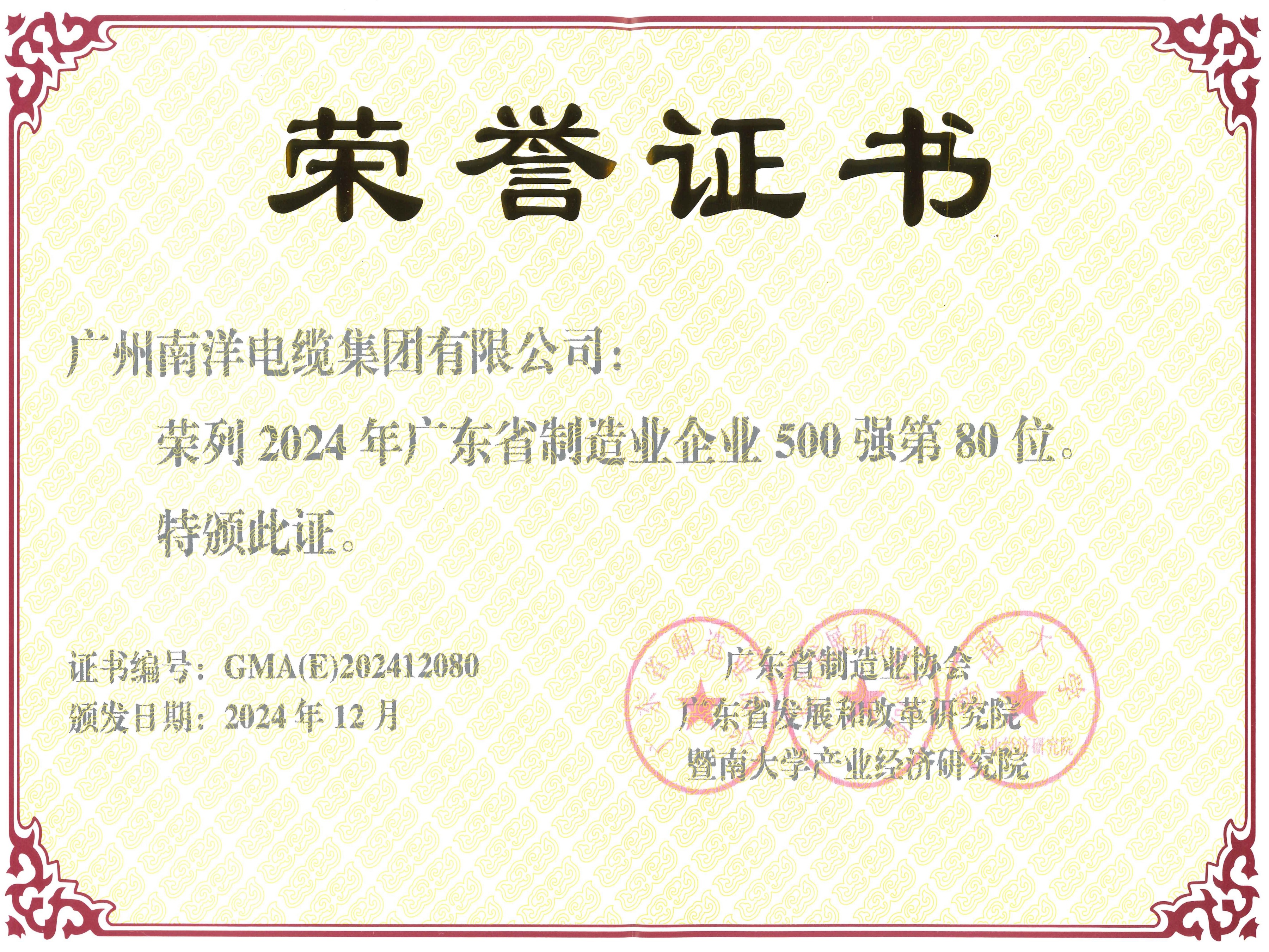 • >喜訊-廣州南洋電纜集團有限公司榮獲2025年廣東省制造業企業5... 2025.11.03